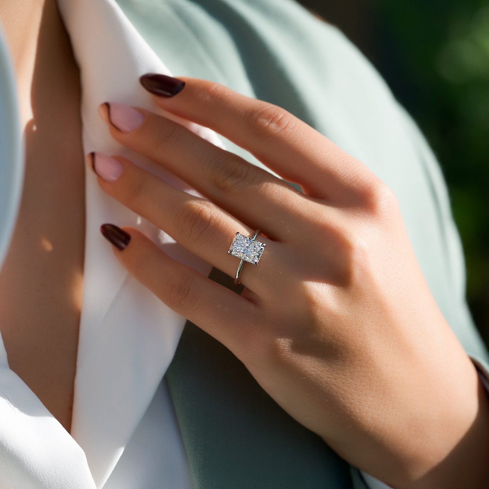 The Low Profile Kamellie Set With A 1.0 Carat Radiant 14K White Gold Lab Diamond