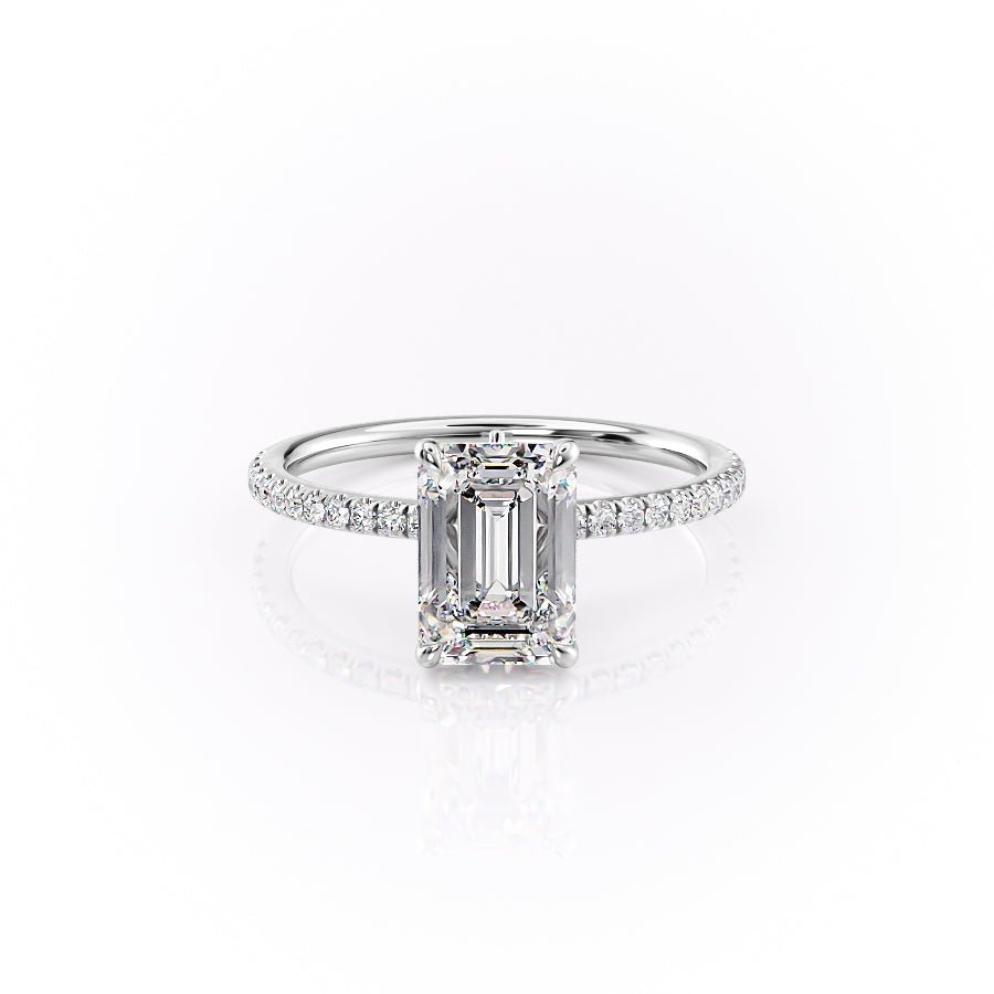 The Pave Luna Set With A 1.0 Carat Emerald 14K White Gold Lab Diamond