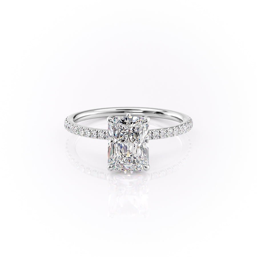 The Pave Luna Set With A 1.0 Carat Radiant 14K White Gold Lab Diamond