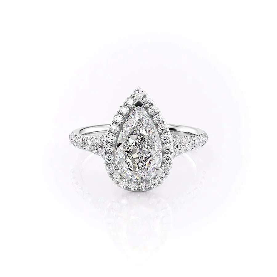 The Miley Set With A 1.0 Carat Pear 14K White Gold Lab Diamond