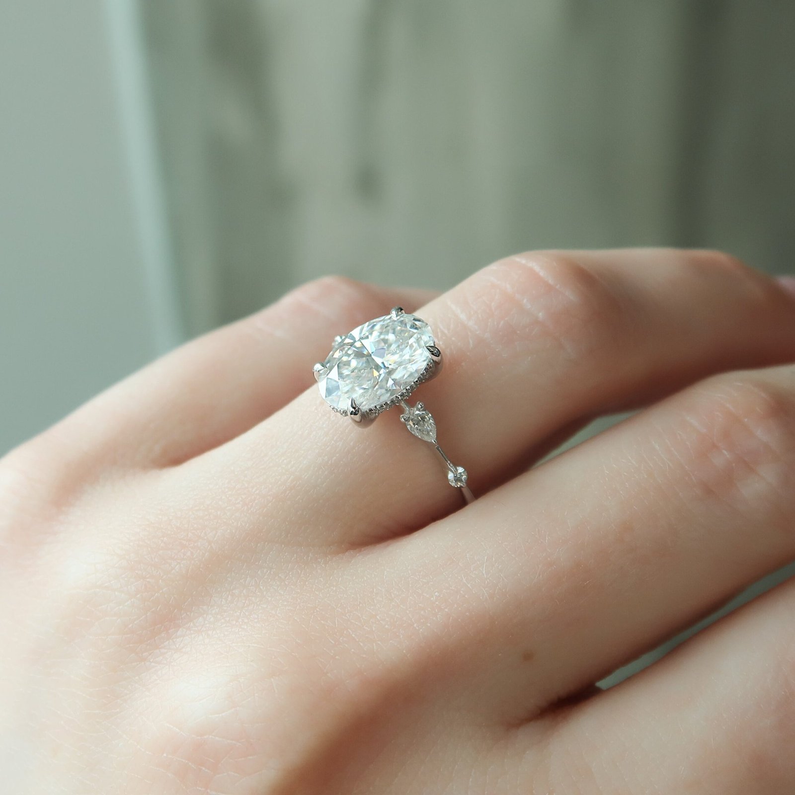 The Naomi Set With A 1.0 Carat Oval 14K White Gold Lab Diamond