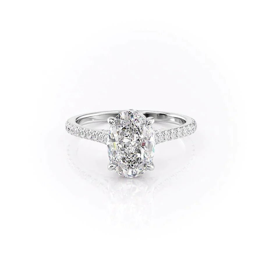 The Pave Natalie Set With A 1.0 Carat Oval 14K White Gold Lab Diamond
