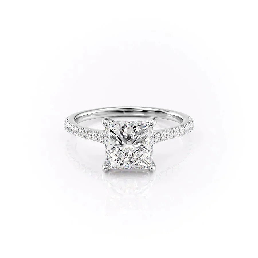 The Pave Natalie Set With A 1.0 Carat Princess 14K White Gold Lab Diamond
