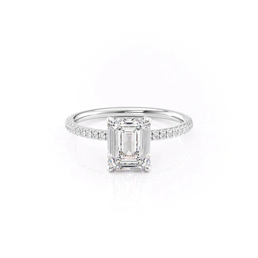 The Pave Nelly Set With A 1.0 Carat Emerald 14K White Gold Lab Diamond