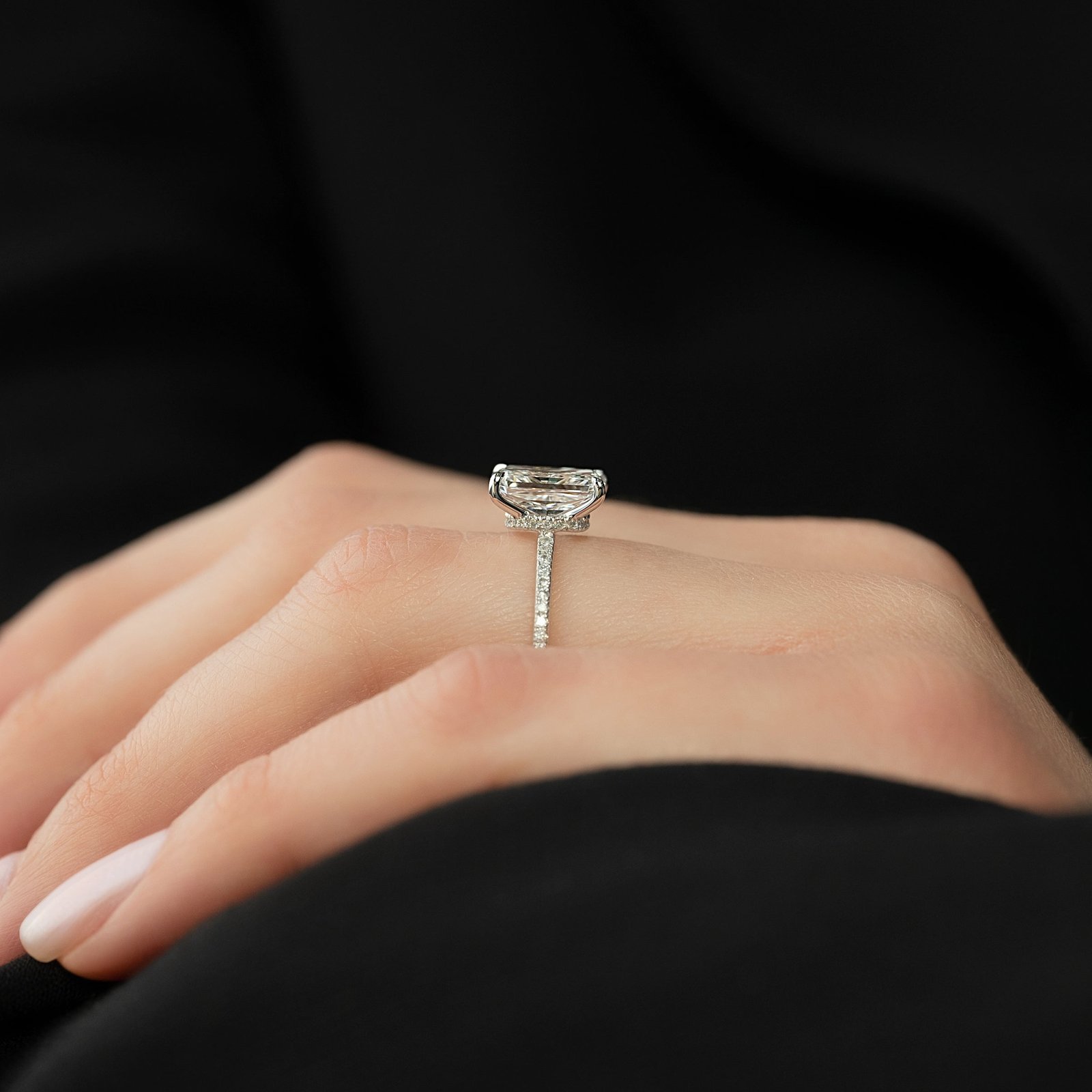 The Pave Nelly Set With A 1.0 Carat Radiant 14K White Gold Lab Diamond