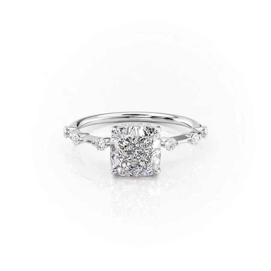 The Hidden Halo Penelope Set With A 1.0 Carat Cushion 14K White Gold Lab Diamond