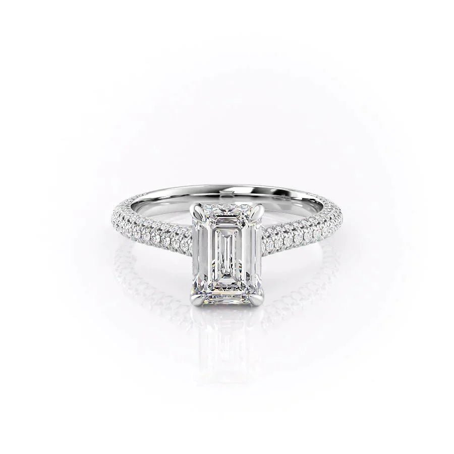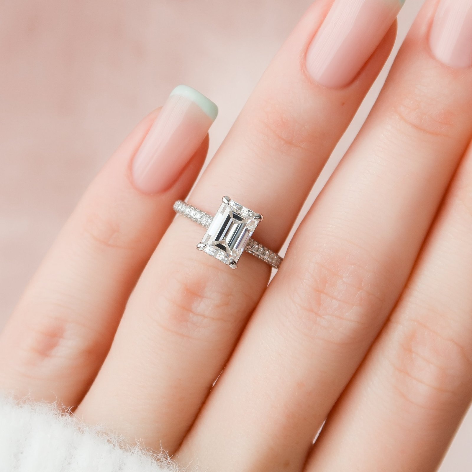 The Rachel Set With A 1.0 Carat Emerald 14K White Gold Lab Diamond