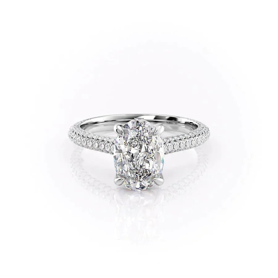 The Rachel Set With A 1.0 Carat Oval 14K White Gold Lab Diamond