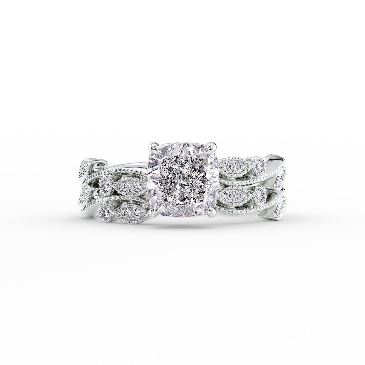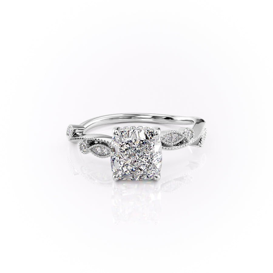The Robin Set With A 1.0 Carat Cushion 14K White Gold Lab Diamond