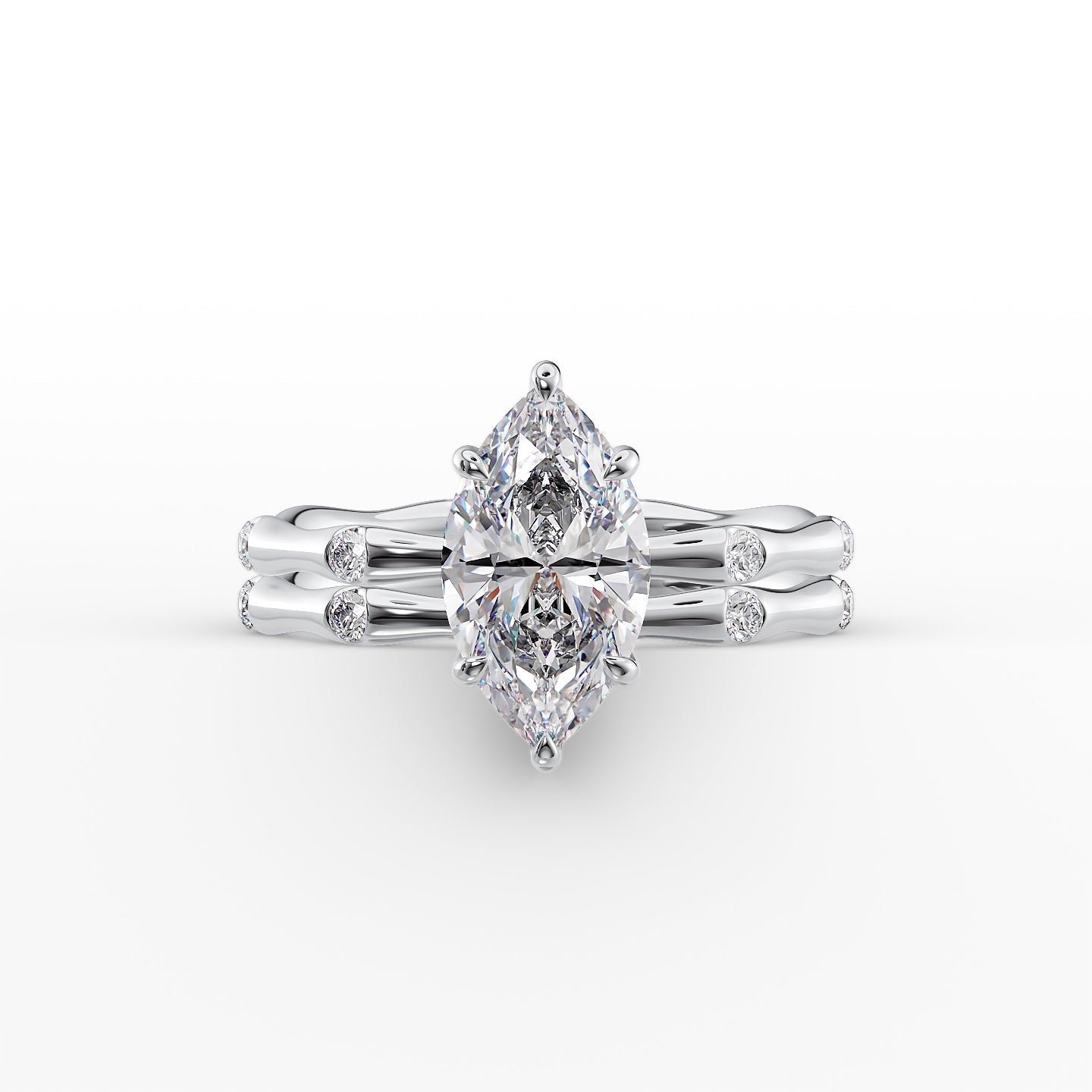 The Samantha Set With A 1.0 Carat Marquise 14K White Gold Lab Diamond
