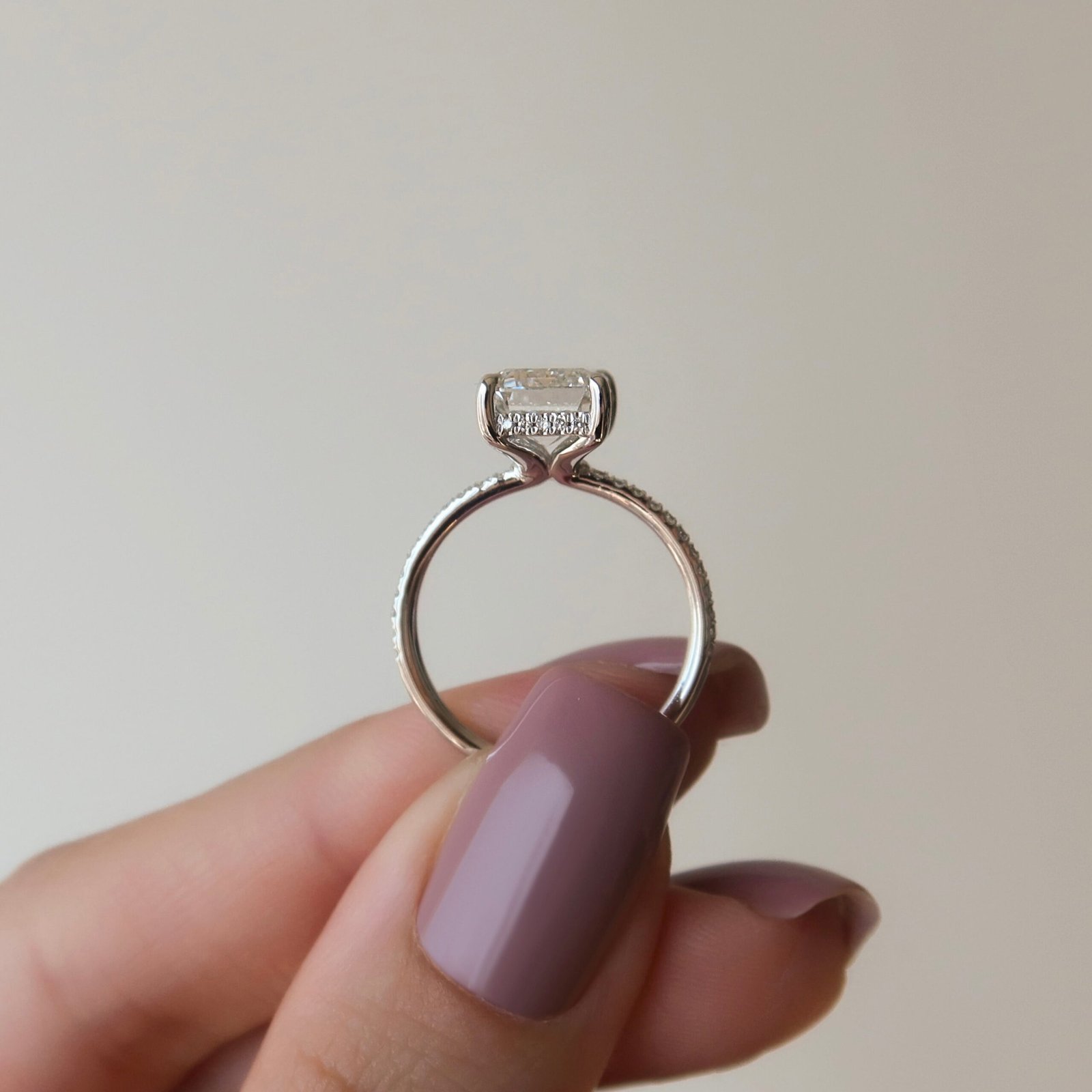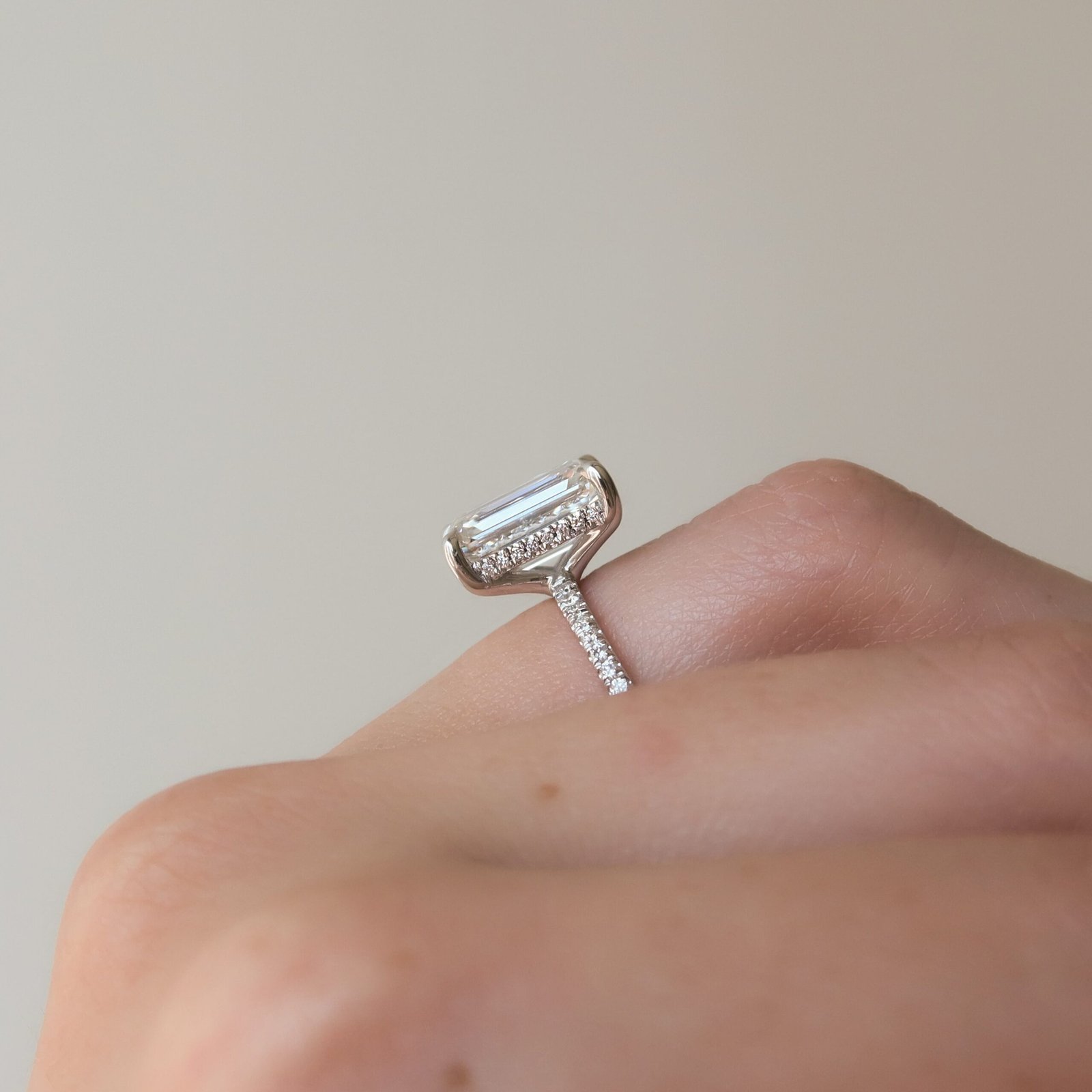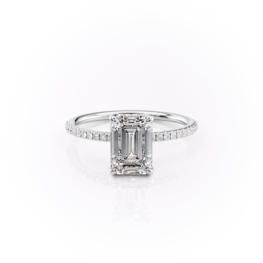 The Pave Sarah Set With A 1.0 Carat Emerald 14K White Gold Lab Diamond