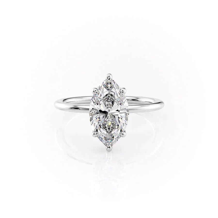 The Sarah Set With A 1.0 Carat Marquise 14K White Gold Lab Diamond
