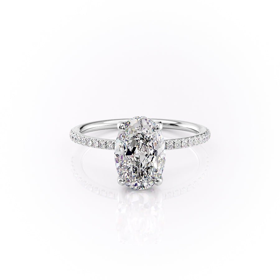 The Pave Sarah Set With A 1.0 Carat Oval 14K White Gold Lab Diamond