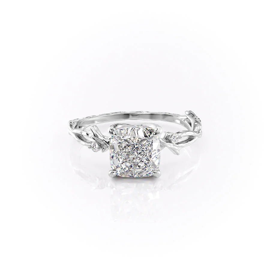The Textured Twig Set With A 1.0 Carat Cushion 14K White Gold Lab Diamond