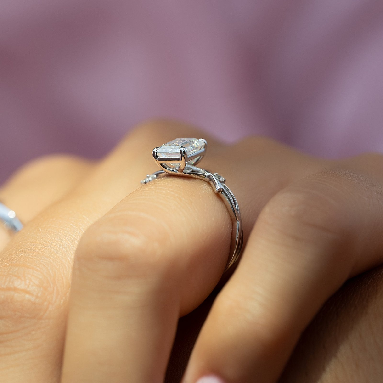 The Twig Set With A 1.0 Carat Emerald 14K White Gold Lab Diamond