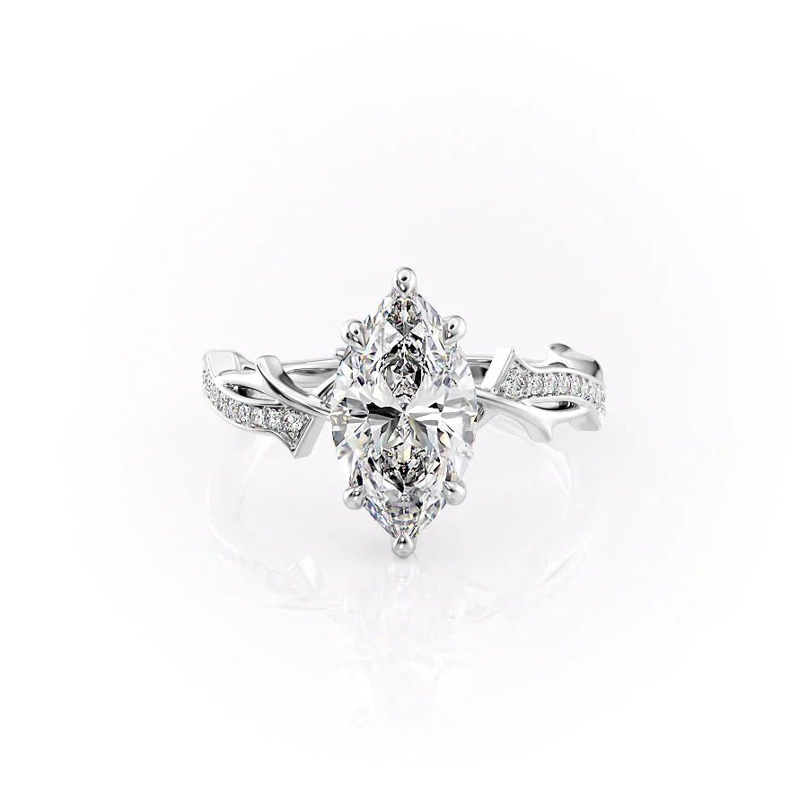 The Pave Twig Set With A 1.0 Carat Marquise 14K White Gold Lab Diamond