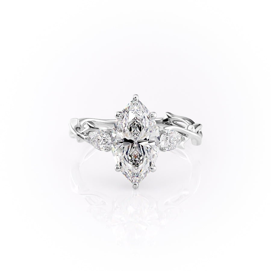 The Three Stone Twig Set With A 1.0 Carat Marquise 14K White Gold Lab Diamond