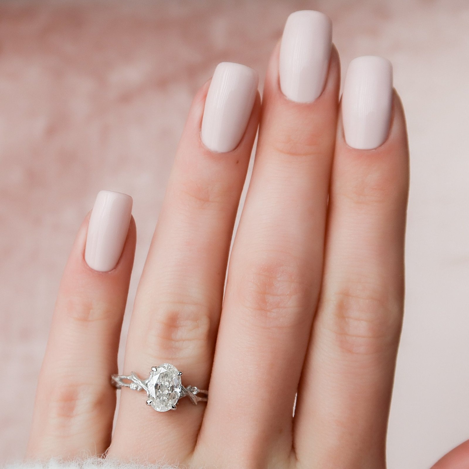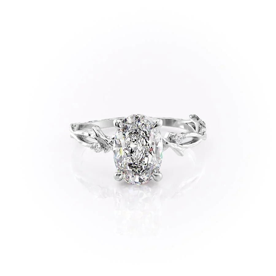 The Textured Twig Set With A 1.0 Carat Oval 14K White Gold Lab Diamond