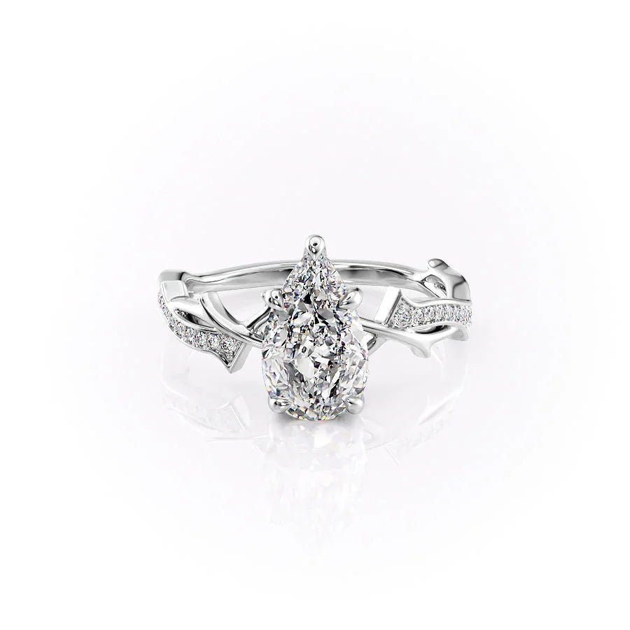 The Pave Twig Set With A 1.0 Carat Pear 14K White Gold Lab Diamond