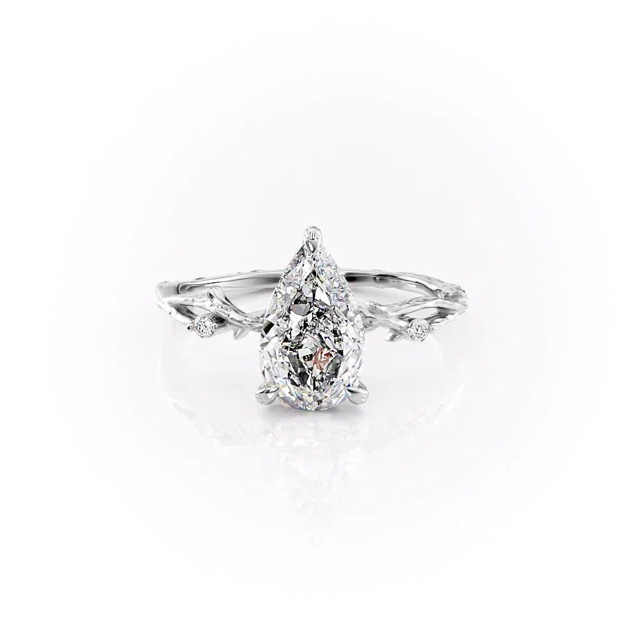 The Textured Twig Set With A 1.0 Carat Pear 14K White Gold Lab Diamond