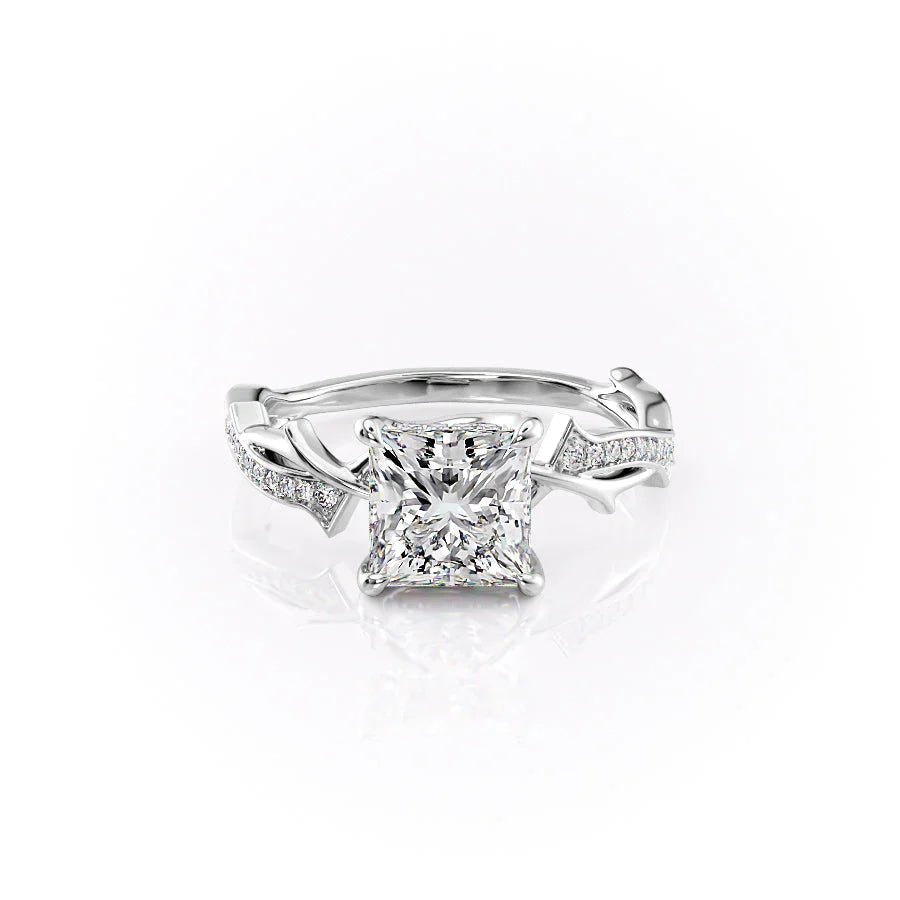 The Pave Twig Set With A 1.0 Carat Princess 14K White Gold Lab Diamond