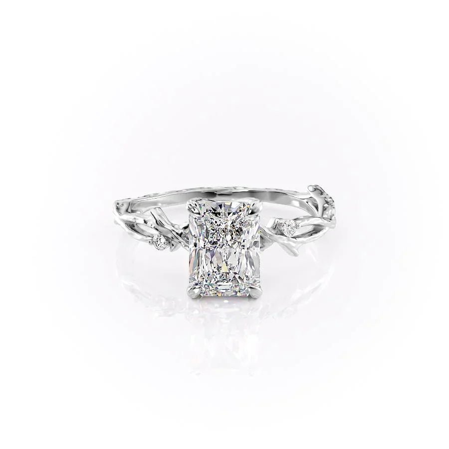 The Textured Twig Set With A 1.0 Carat Radiant 14K White Gold Lab Diamond