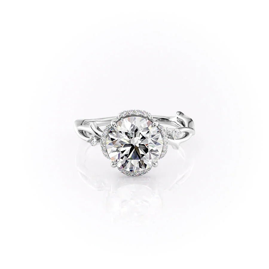 The Halo Twig Set With A 2.0 Carat Round 14K White Gold Moissanite